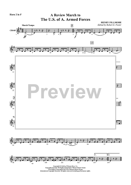 Digital Sheet Music for A Review March to The U.S. of A. Armed Forces - Horn 2 in F by Henry Fillmore, Robert E. Foster scored for Concert Band; id:435488