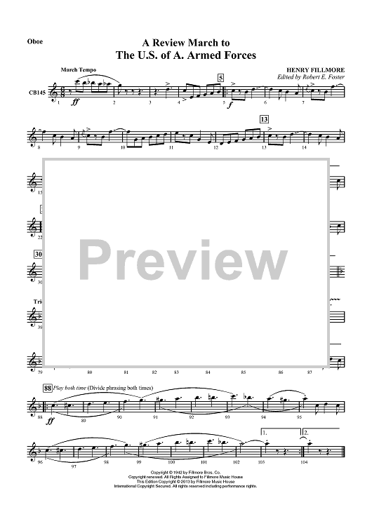 Digital Sheet Music for A Review March to The U.S. of A. Armed Forces - Oboe by Henry Fillmore, Robert E. Foster scored for Concert Band; id:435472