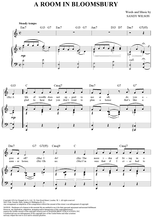 "A Room in Bloomsbury" Sheet Music by Sandy Wilson