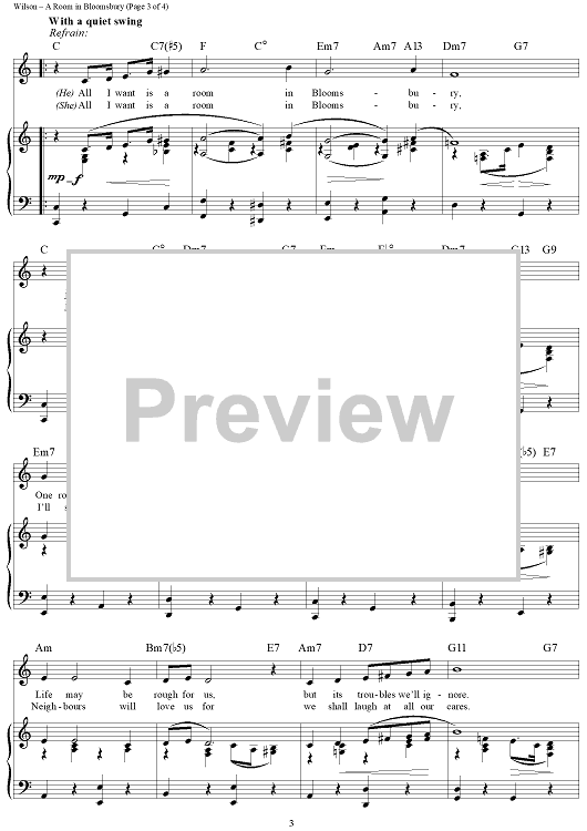 Digital Sheet Music for A Room in Bloomsbury by Sandy Wilson scored for Piano/Vocal/Chords; id:321063