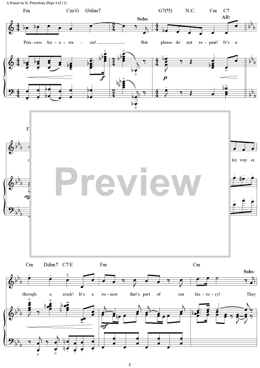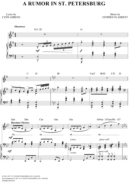 Digital Sheet Music for A Rumor in St. Petersburg by Stephen Flaherty, Lynn Ahrens scored for Piano/Vocal/Chords; id:96035
