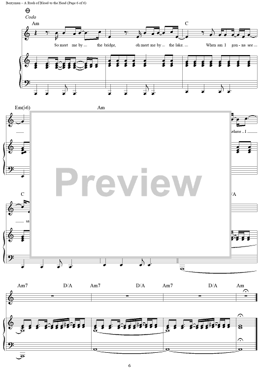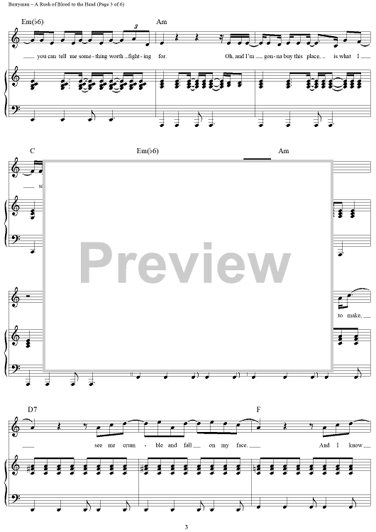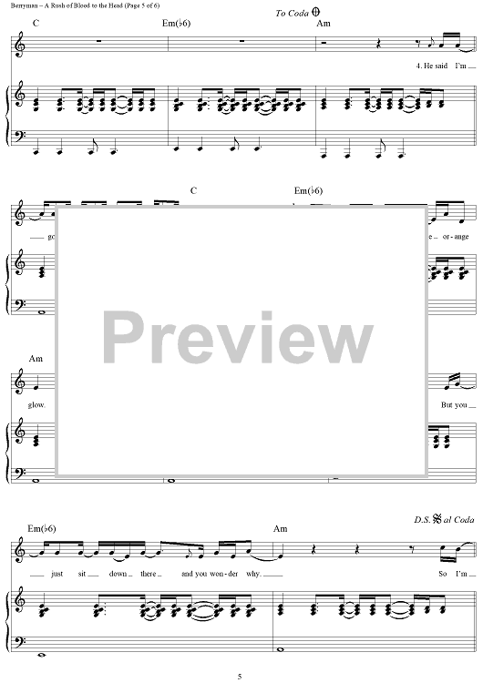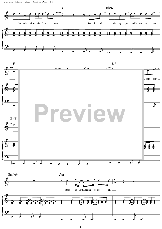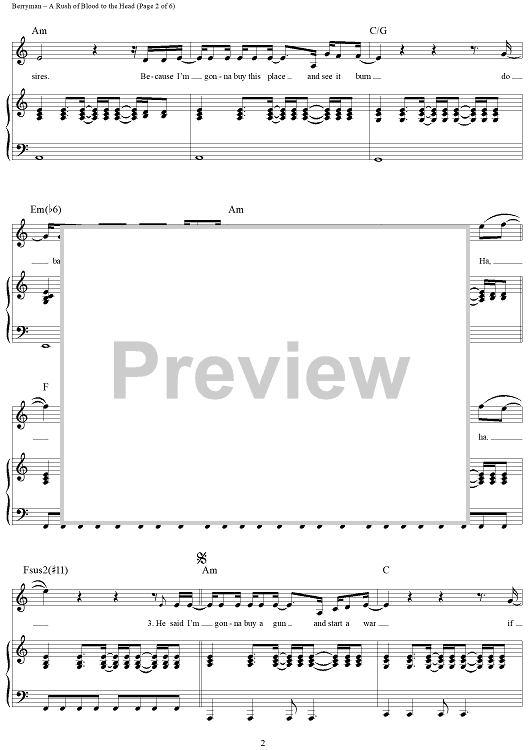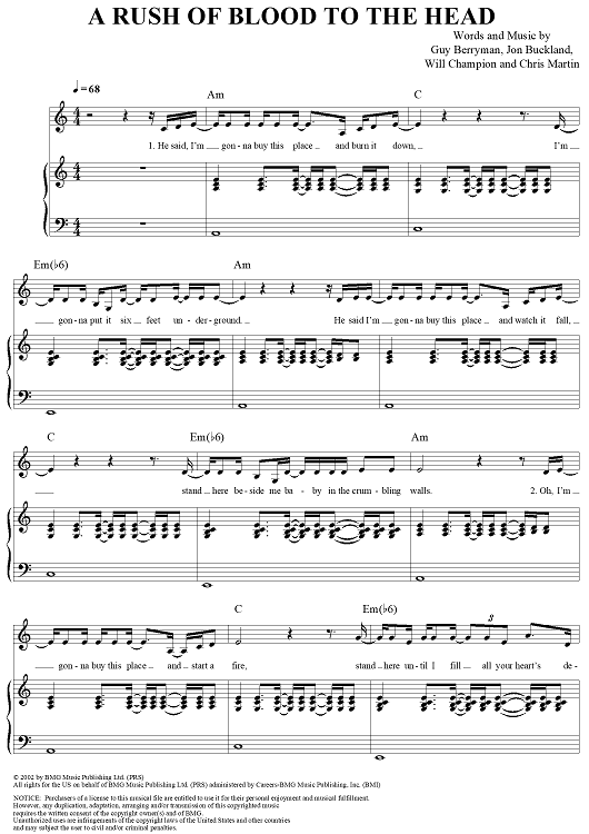 Digital Sheet Music for A Rush of Blood to the Head by Chris Martin, Coldplay, Jonny Buckland, Guy Berryman scored for Piano/Vocal/Chords; id:321261