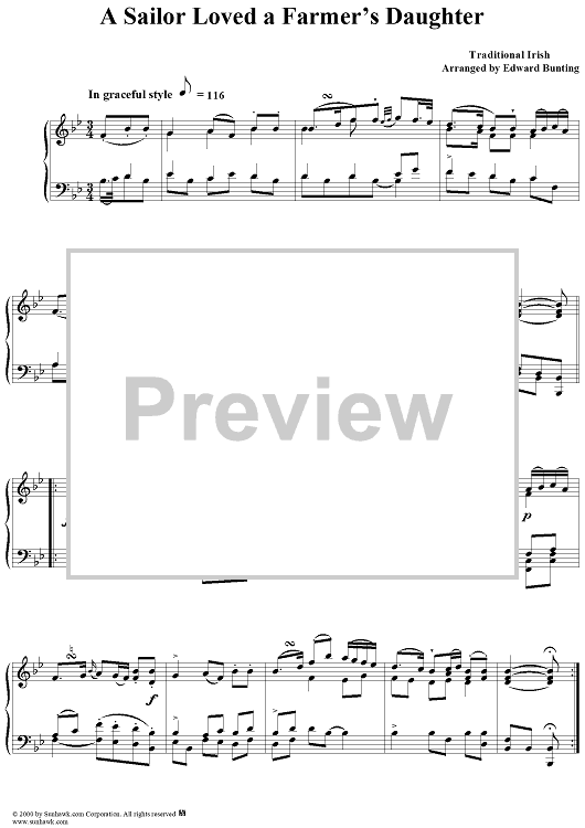 Digital Sheet Music for A Sailor Loved a Farmer's Daughter by , Edward Bunting, Traditional scored for Piano Solo; id:234632