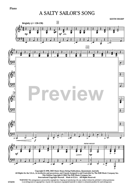 Digital Sheet Music for A Salty Sailor's Song - Piano by Keith Sharp scored for String Orchestra; id:505893