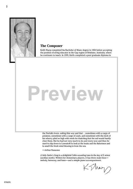 Digital Sheet Music for A Salty Sailor's Song - Score by Keith Sharp scored for String Orchestra; id:505885
