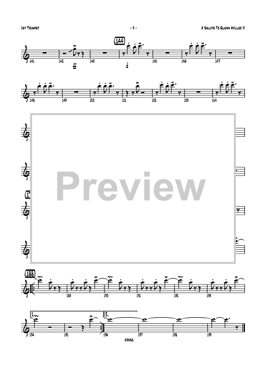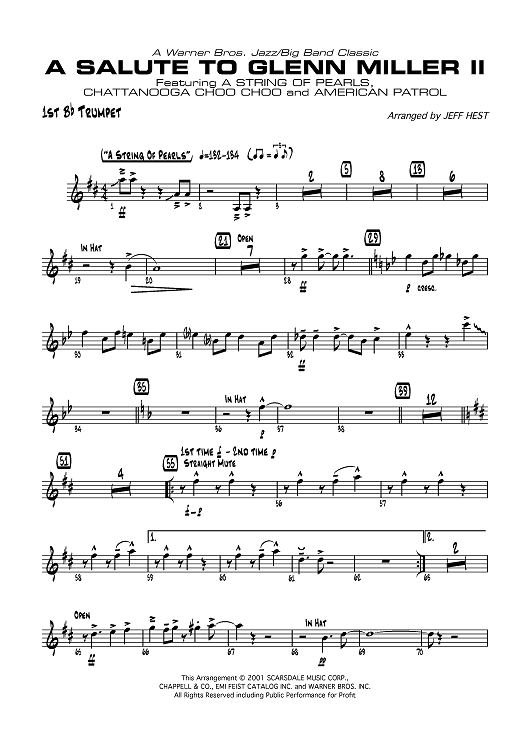 Digital Sheet Music for A Salute to Glenn Miller II - B-flat Trumpet 1 by Glenn Miller, Jeff Hest scored for Jazz Ensemble; id:358606