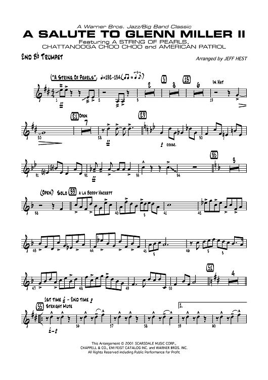 Digital Sheet Music for A Salute to Glenn Miller II - B-flat Trumpet 2 by Glenn Miller, Jeff Hest scored for Jazz Ensemble; id:358607
