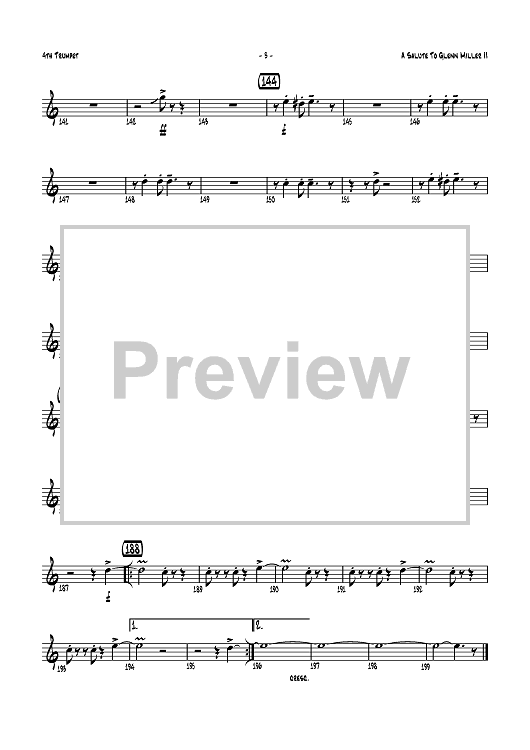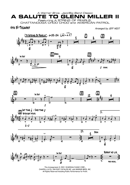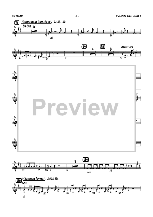 Digital Sheet Music for A Salute to Glenn Miller II - B-flat Trumpet 4 by Glenn Miller, Jeff Hest scored for Jazz Ensemble; id:358609