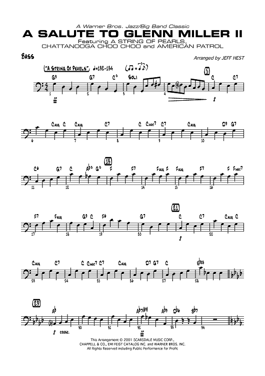 Digital Sheet Music for A Salute to Glenn Miller II - Bass by Glenn Miller, Jeff Hest scored for Jazz Ensemble; id:358616