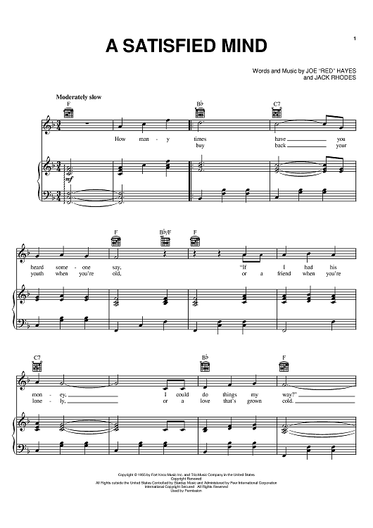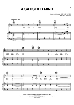 Digital Sheet Music for A Satisfied Mind by Porter Wagoner, Red Foley, Joe 'Red' Hayes, Jack Rhodes, Jean Shepard scored for Piano/Vocal/Chords; id:368387