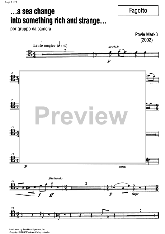 "...a sea change into something rich and strange - Bassoon" Sheet Music by Pavle Merkù