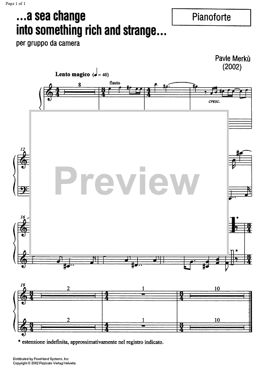 Digital Sheet Music for ...a sea change into something rich and strange - Piano by , Pavle Merkù scored for Flute/B-flat Clarinet/Bassoon/Percussion/Piano/Viola/Cello/Double Bass; id:352521