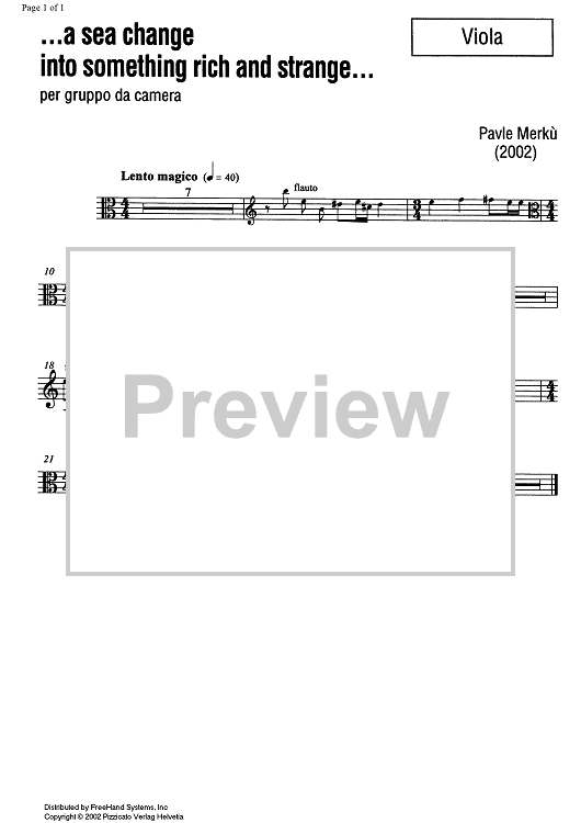 Digital Sheet Music for ...a sea change into something rich and strange - Viola by , Pavle Merkù scored for Flute/B-flat Clarinet/Bassoon/Percussion/Piano/Viola/Cello/Double Bass; id:352523