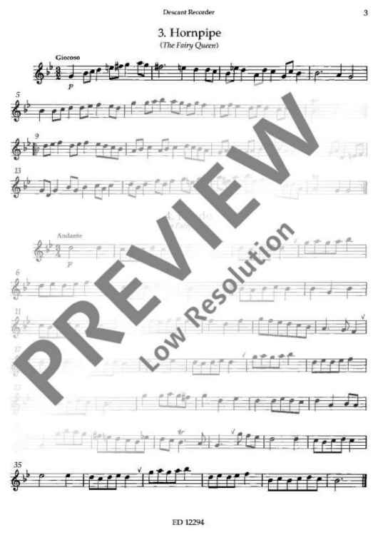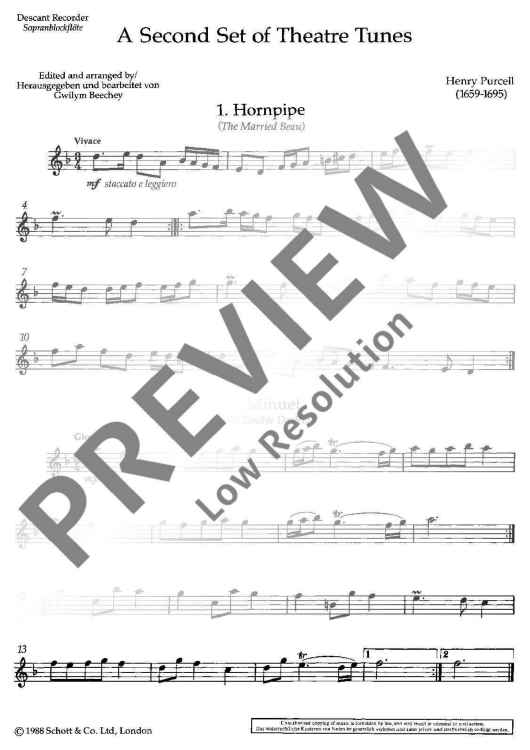 "A second Set of Theatre Tunes" Sheet Music by Henry Purcell