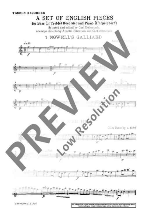 Digital Sheet Music for A Set of English Pieces by scored for Alto- (bass-) Recorder And Piano; id:486393
