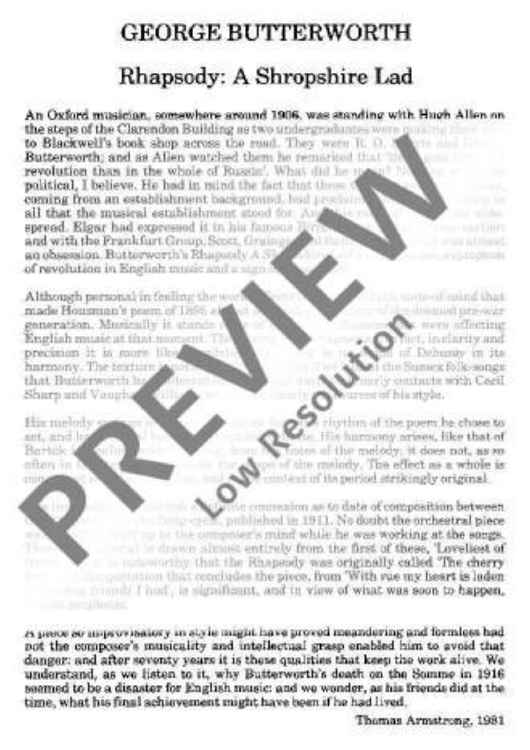 "A Shropshire Lad - Full Score" Sheet Music by George Butterworth