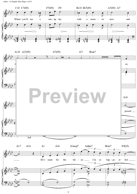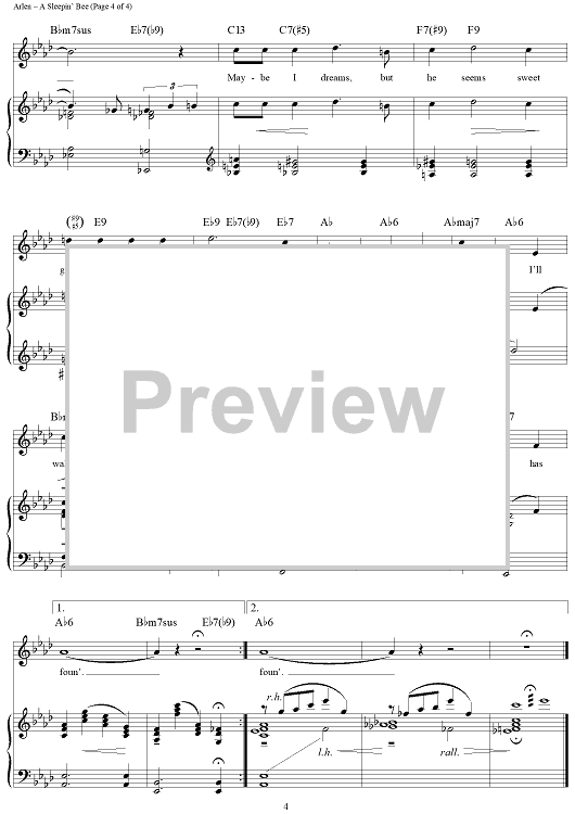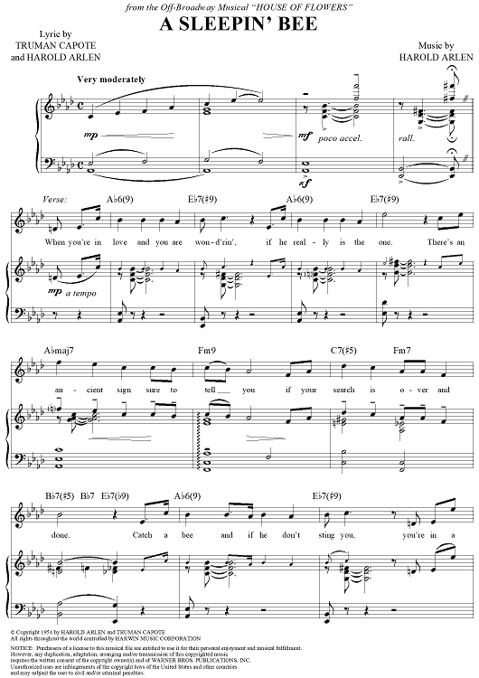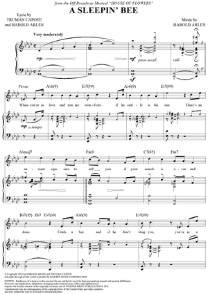 Digital Sheet Music for A Sleepin' Bee by Harold Arlen, Truman Capote scored for Piano/Vocal/Chords; id:355998