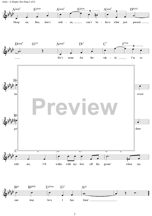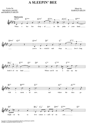 Digital Sheet Music for A Sleepin' Bee by Harold Arlen, Truman Capote scored for Lead Sheet; id:446978