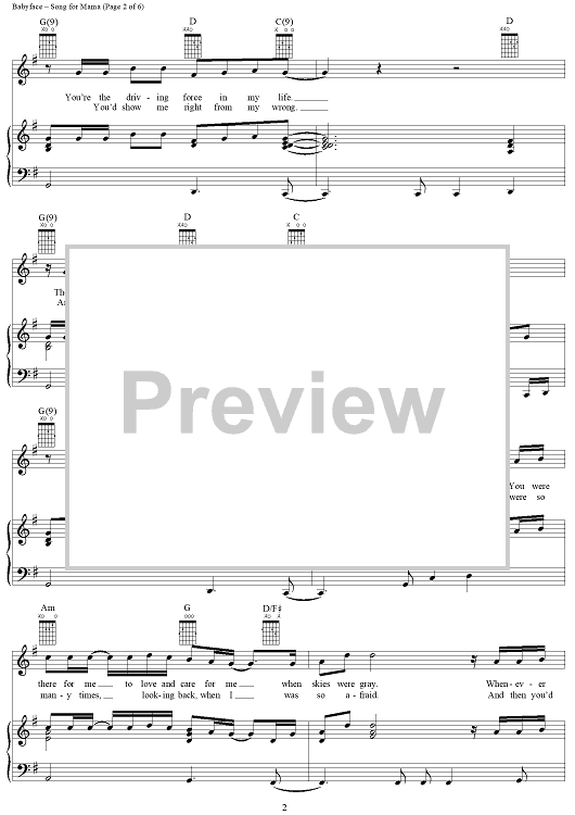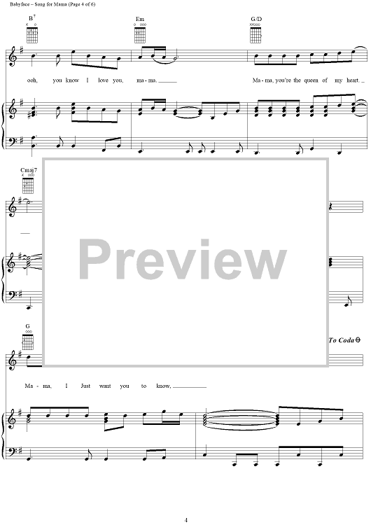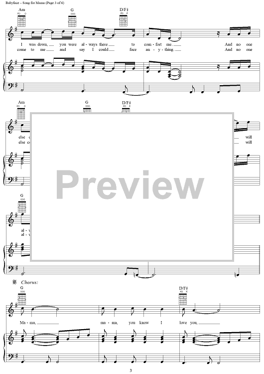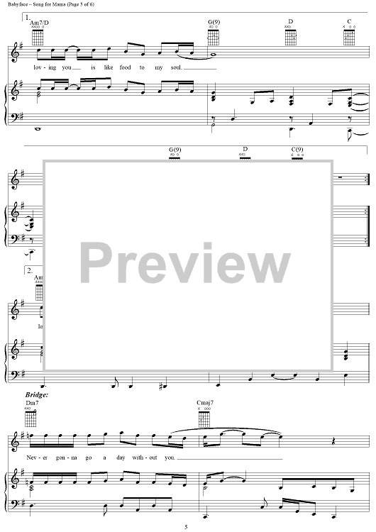 Digital Sheet Music for A Song for Mama by Boyz II Men, Babyface scored for Piano/Vocal/Chords; id:109800