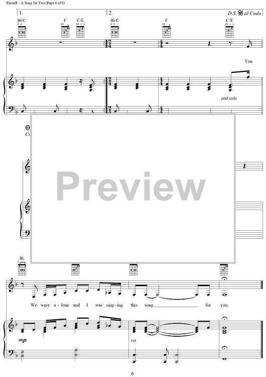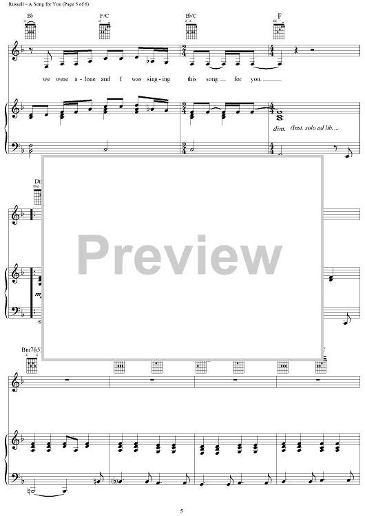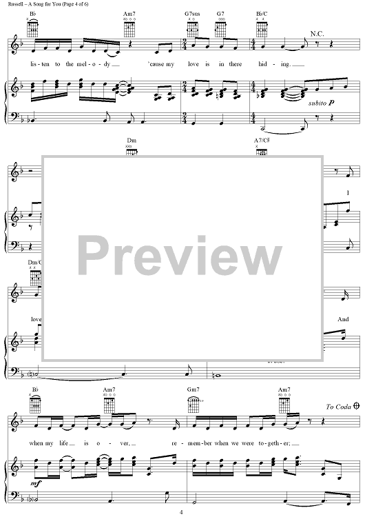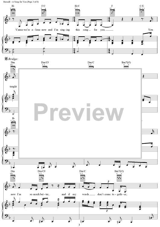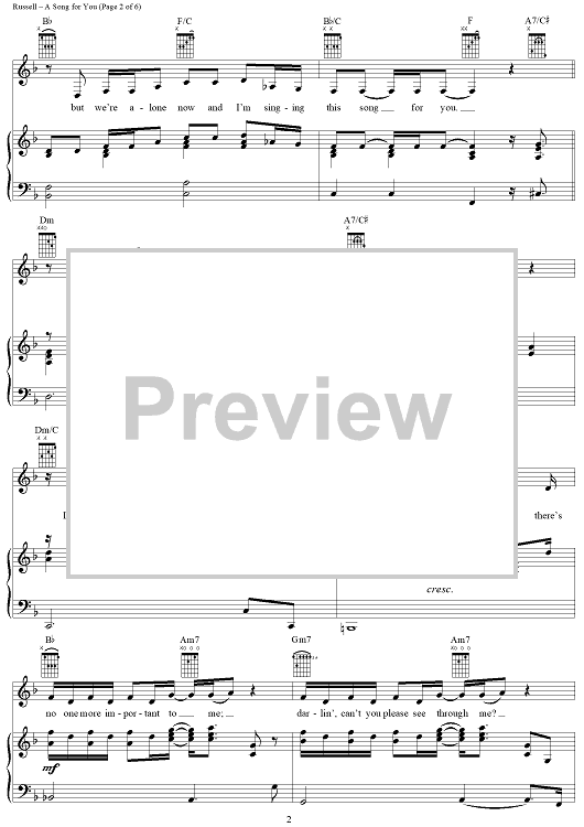 Digital Sheet Music for A Song for You by The Carpenters, Joe Cocker, Ray Charles, Leon Russell, Michael Buble, Elliott Yamin scored for Piano/Vocal/Chords; id:256225