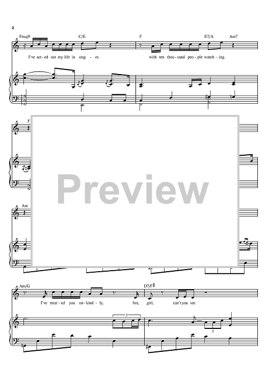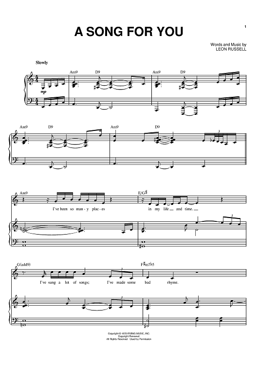 Digital Sheet Music for A Song For You by The Carpenters, Joe Cocker, Ray Charles, Leon Russell, Michael Buble, Elliott Yamin scored for Piano/Vocal/Chords; id:384140