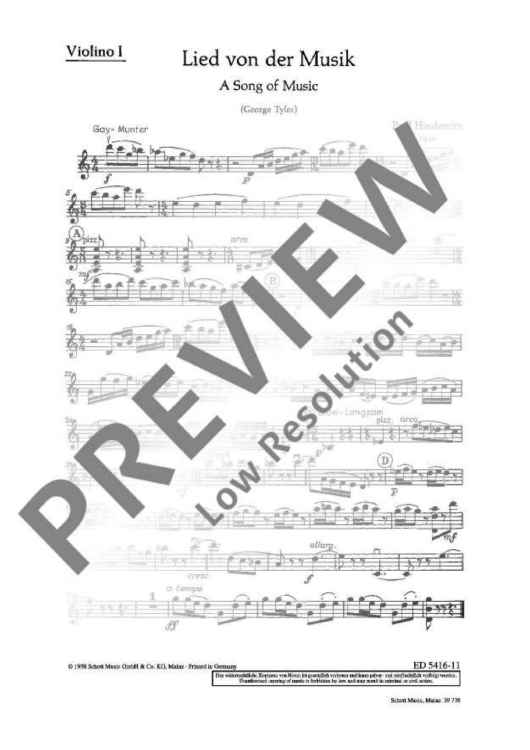 "A Song of Music - Violin I" Sheet Music by Paul Hindemith