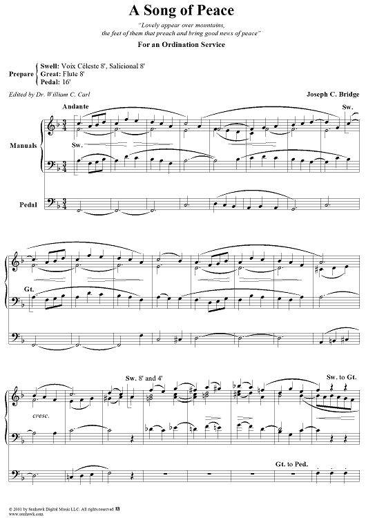 Digital Sheet Music for A Song of Peace by J. Bridge scored for Organ Solo; id:266805