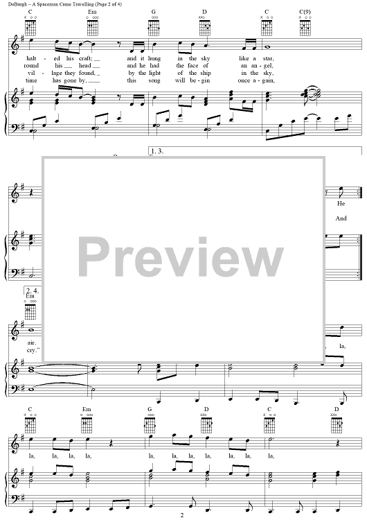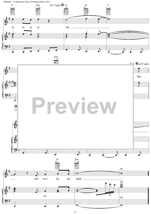 Digital Sheet Music for A Spaceman Came Travelling by Chris DeBurgh scored for Piano/Vocal/Chords; id:366831