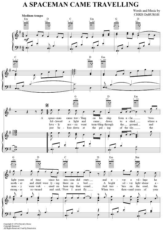 "A Spaceman Came Travelling" Sheet Music by Chris DeBurgh