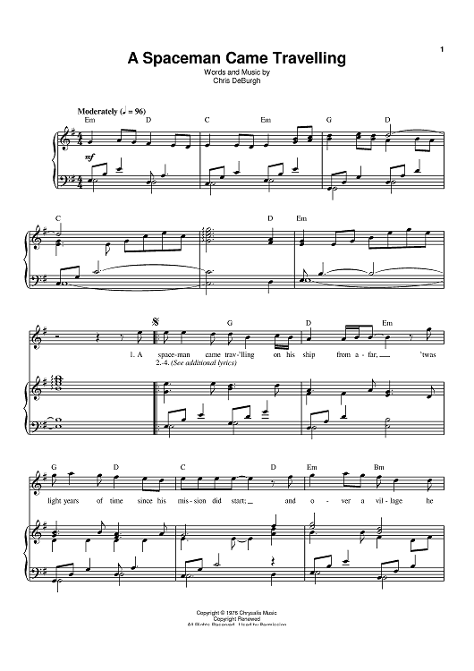 Digital Sheet Music for A Spaceman Came Travelling by Chris de Burgh scored for Piano/Vocal/Chords; id:398593