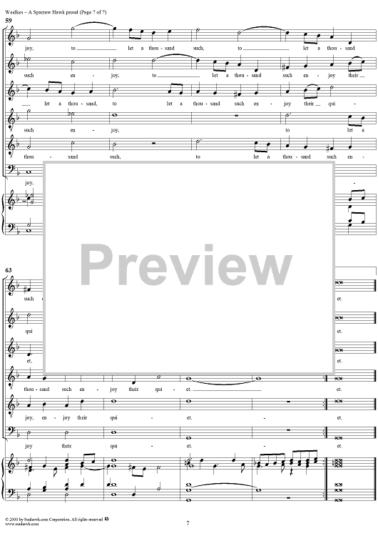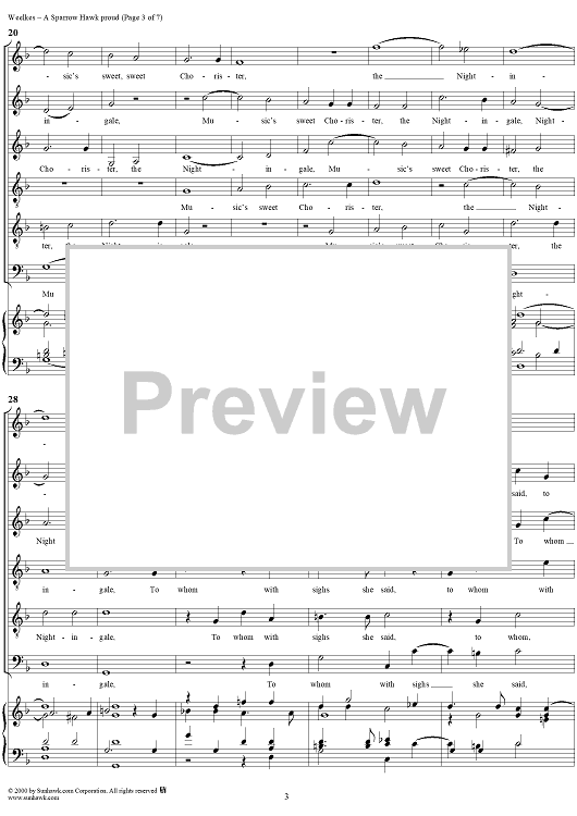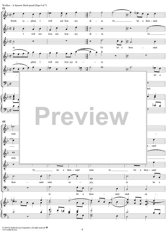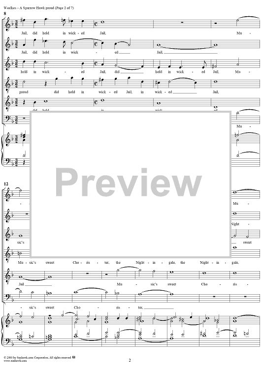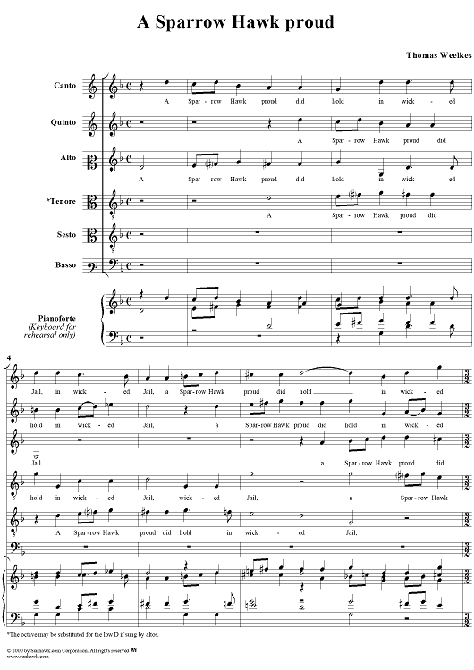 Digital Sheet Music for A Sparrow Hawk Proud by Thomas Weelkes scored for Six-part Mixed Chorus; id:263859