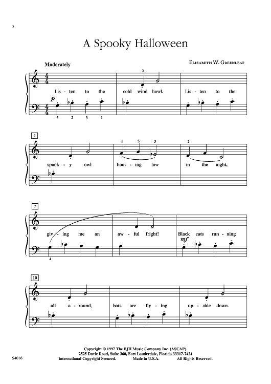 This piece captures the scary mood of Halloween with its chromatic minor melody. Students will love to perform this delightful piano solo.