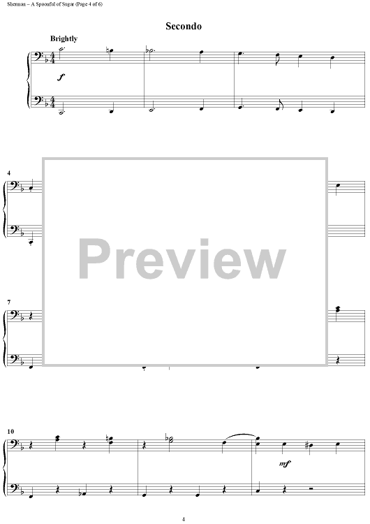 Digital Sheet Music for A Spoonful Of Sugar by Richard M. Sherman, Robert B. Sherman, Julie Andrews scored for 1 Piano, 4 Hands; id:395439