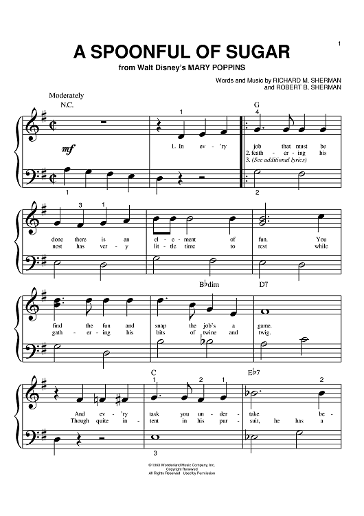 Digital Sheet Music for A Spoonful Of Sugar by Richard M. Sherman, Robert B. Sherman, Julie Andrews scored for Big Note Piano; id:398312
