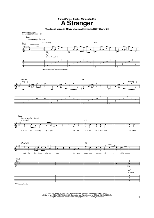 Digital Sheet Music for A Stranger by Maynard James Keenan, Billy Howerdel, A Perfect Circle scored for Guitar Tab; id:380577