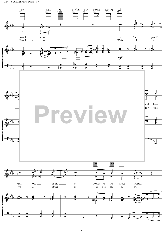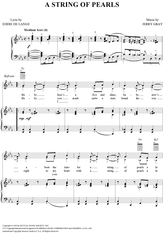 Digital Sheet Music for A String of Pearls by Jerry Gray, Glenn Miller, Eddie De Lange scored for Piano/Vocal/Chords; id:168417