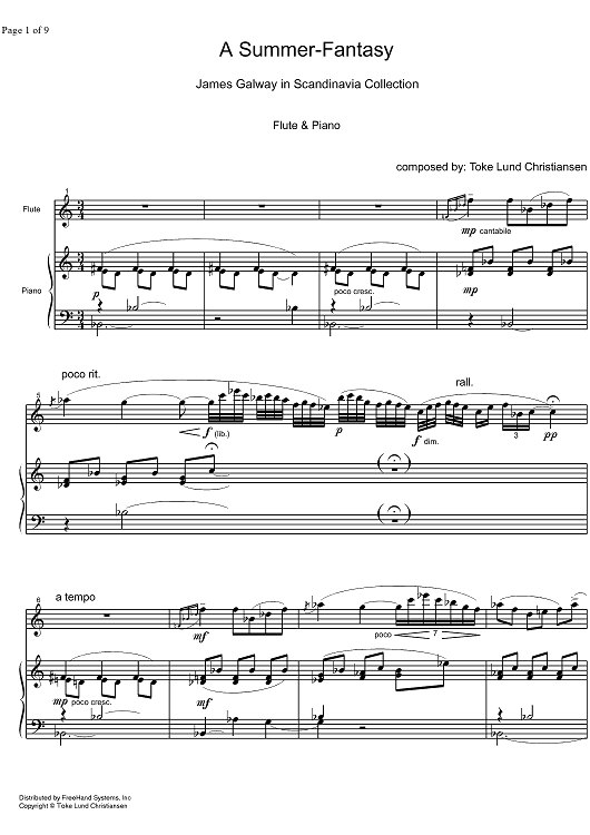 Digital Sheet Music for A Summer-Fantasy - Score by , Toke Lund Christiansen scored for Flute/Piano; id:325379