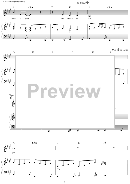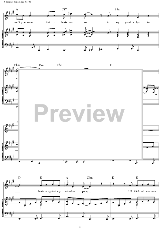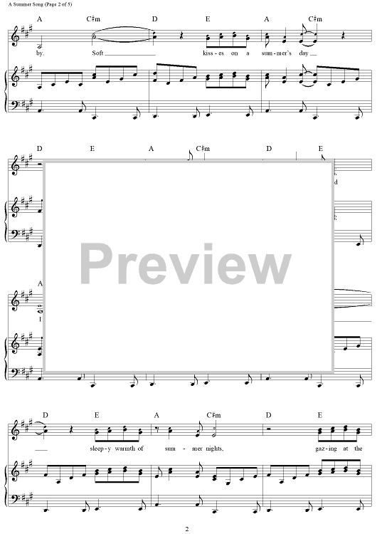 Digital Sheet Music for A Summer Song by Chad & Jeremy, Clive Metcalf, Keith Noble, David Stuart scored for Piano/Vocal/Chords; id:461289