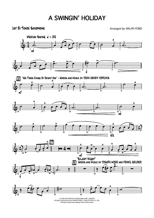 Digital Sheet Music for A Swingin' Holiday - B-flat Tenor Saxophone 1 by Various, Ralph Ford scored for Jazz Ensemble; id:358491