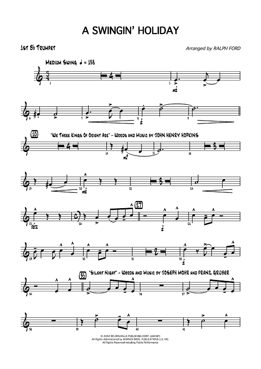 Digital Sheet Music for A Swingin' Holiday - B-flat Trumpet 1 by Various, Ralph Ford scored for Jazz Ensemble; id:358494