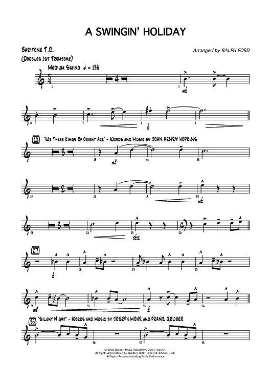 Digital Sheet Music for A Swingin' Holiday - Baritone TC by Various, Ralph Ford scored for Jazz Ensemble; id:358501