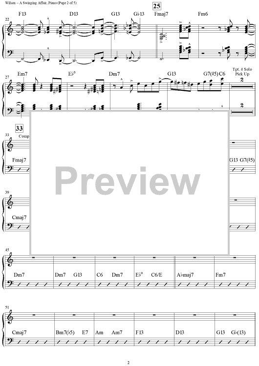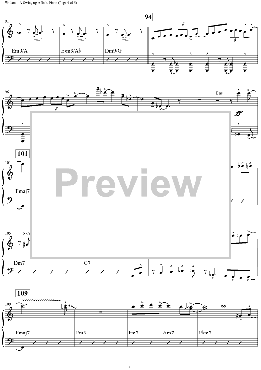 Digital Sheet Music for A Swinging Affair - Piano by Ed Wilson, The Ed Wilson Big Band scored for Jazz Ensemble; id:311028
