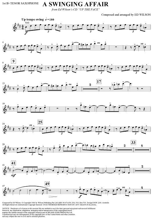 Digital Sheet Music for A Swinging Affair - Tenor Saxophone 1 by Ed Wilson, The Ed Wilson Big Band scored for Jazz Ensemble; id:311016