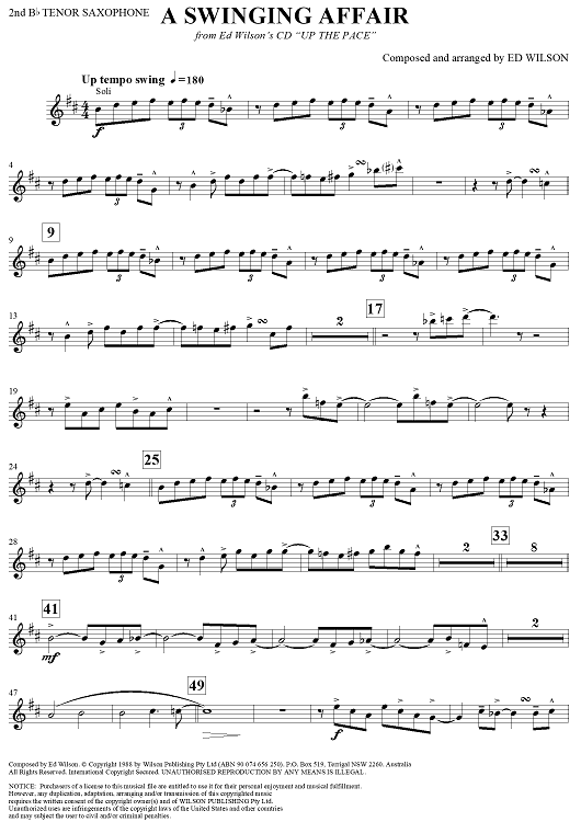 Digital Sheet Music for A Swinging Affair - Tenor Saxophone 2 by Ed Wilson, The Ed Wilson Big Band scored for Jazz Ensemble; id:311017