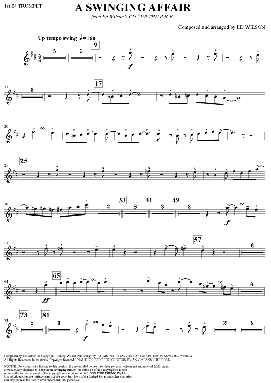 Digital Sheet Music for A Swinging Affair - Trumpet 1 by Ed Wilson, The Ed Wilson Big Band scored for Jazz Ensemble; id:311019