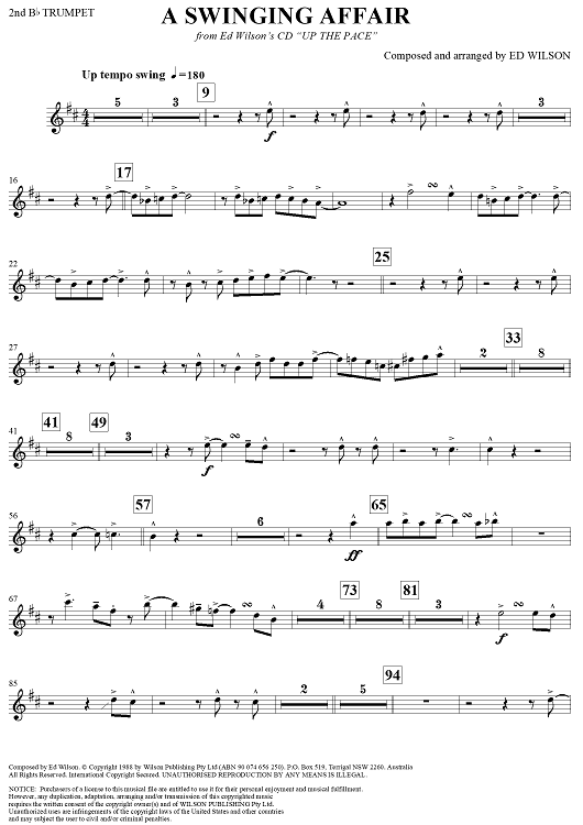 Digital Sheet Music for A Swinging Affair - Trumpet 2 by Ed Wilson, The Ed Wilson Big Band scored for Jazz Ensemble; id:311020