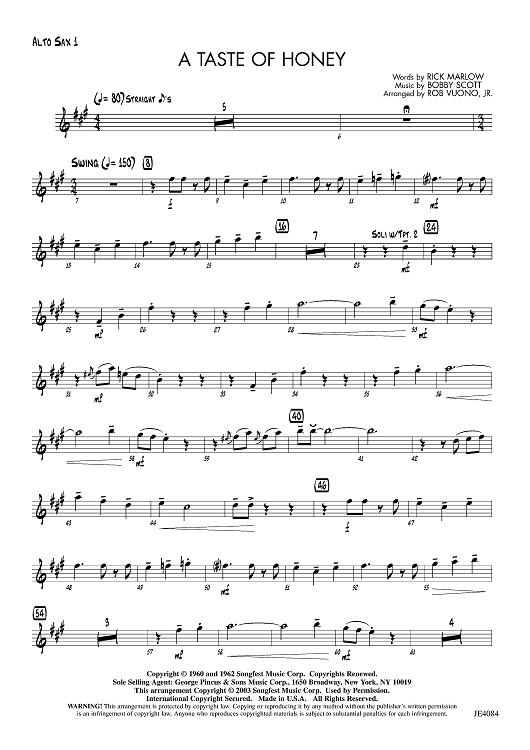 "A Taste of Honey - Alto Sax 1" Sheet Music by Bobby Scott