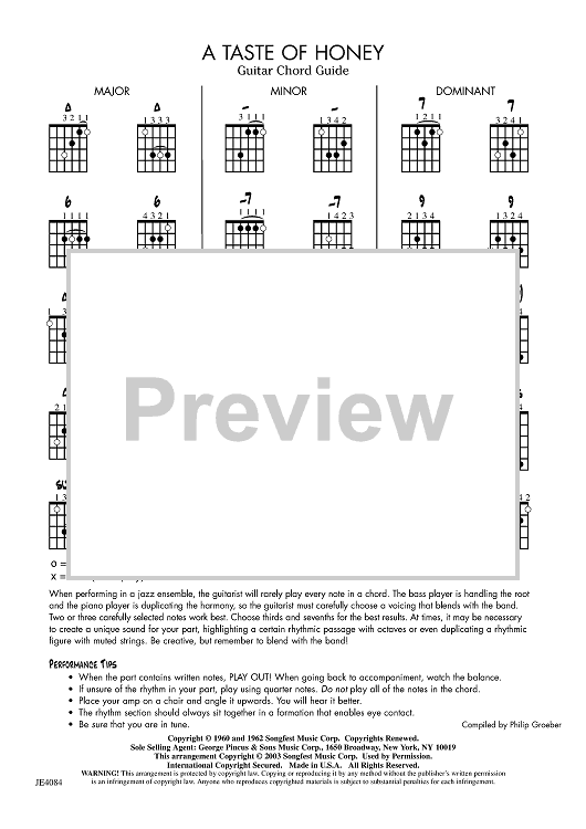 Digital Sheet Music for A Taste of Honey - Guitar Chord Guide by Bobby Scott, Rob Vuono, Jr. scored for Jazz Ensemble; id:455808