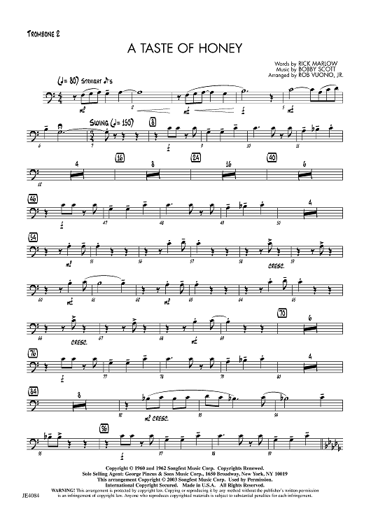 "A Taste of Honey - Trombone 2" Sheet Music by Bobby Scott