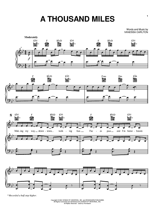 "A Thousand Miles" Sheet Music by Vanessa Carlton